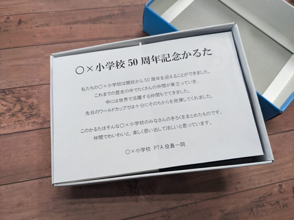 かるたの箱の中に印刷物1枚を印刷・封入を無料でサービスいたします。