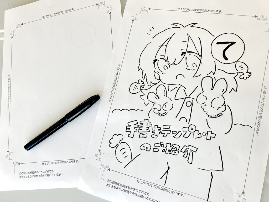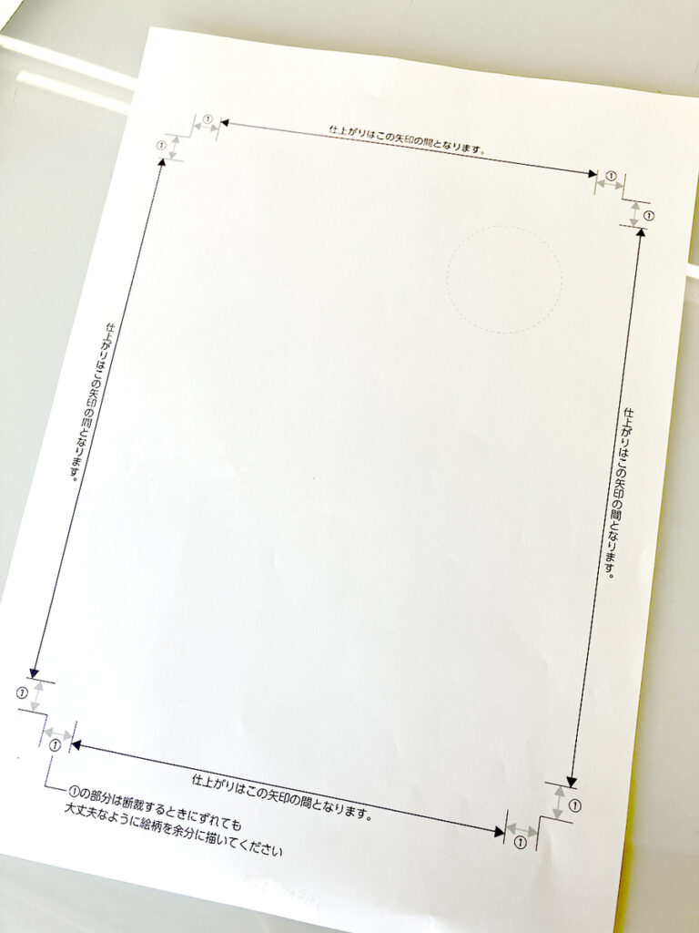 手書きテンプレートは印刷の都合上、枠がなくトンボのみの印刷となっています。
